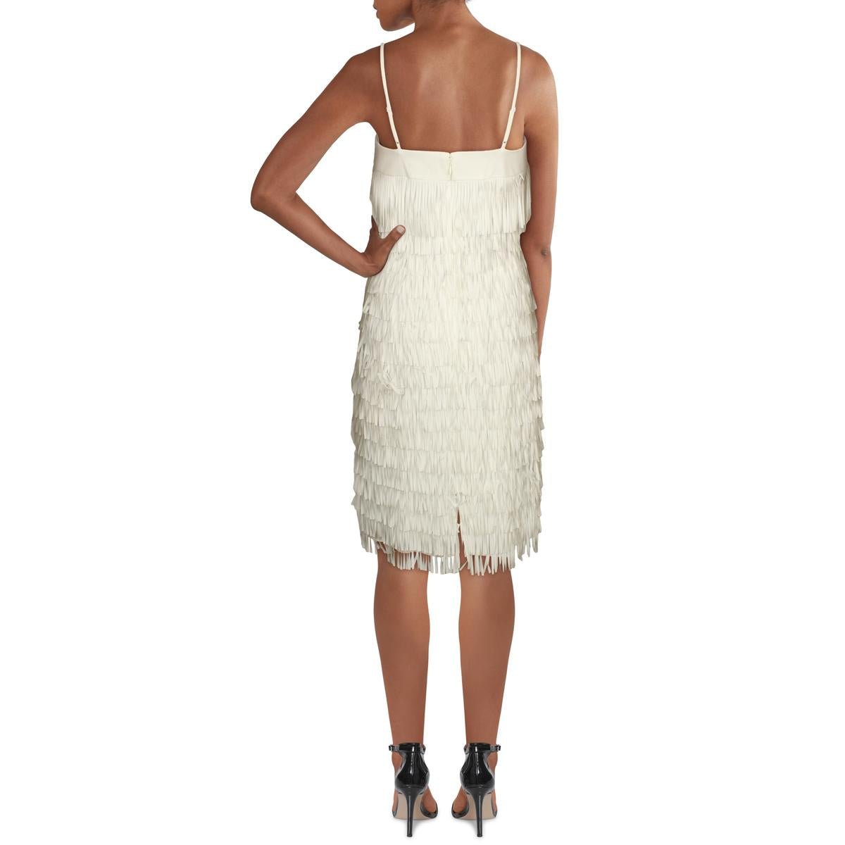 Fall in love with this fringed sleeveless mini dress by Aidan Mattox. Made with 90% polyester and 10% elastane. This classic look is reimagined with allover fringed details. It features spaghetti straps and a square neckline. Stunning and versatile. this dress will dazzle from weddings to evening dates.