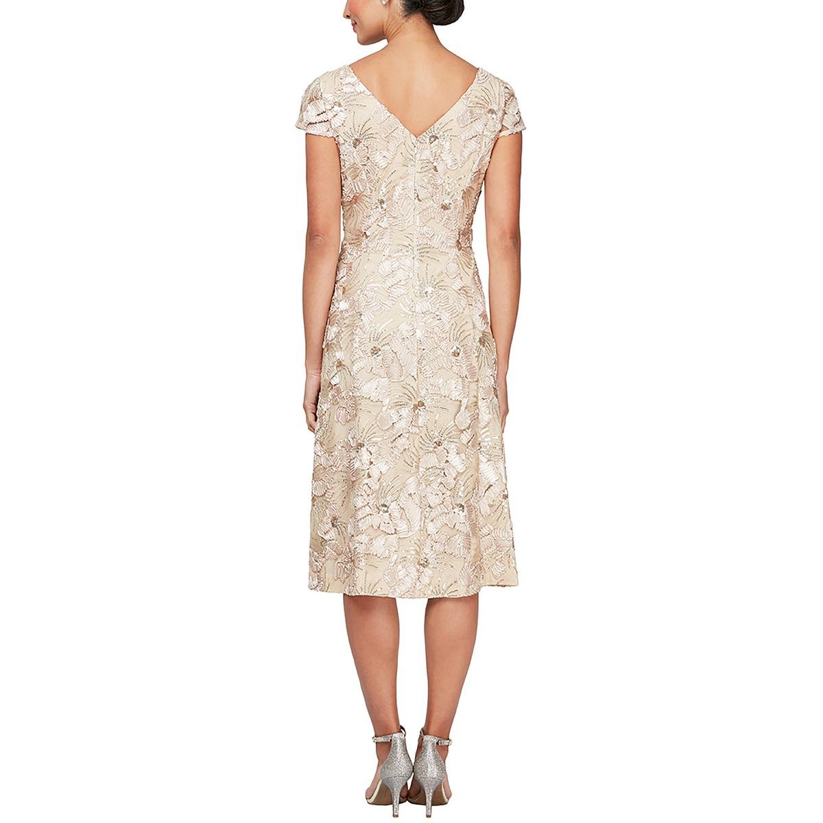 Alex Evenings Womens Plus Sequined Lace Midi Dress
